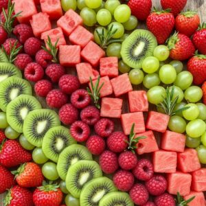 Include colorful fruits like kiwi, melon, grapes, and berries.
