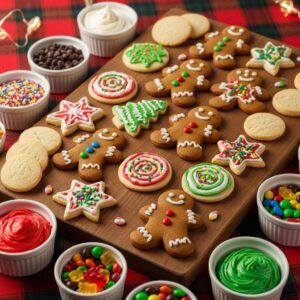 Fill your board with different types of cookies—gingerbread men, sugar cookies, chocolate chips, and shortbread.