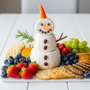 Build a snowman out of fruit or cheese! Stack three rounds of brie or arrange banana slices into a snowman shape.