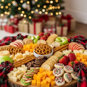 Keep the layout colorful with red, white, and green snacks to match the Christmas theme.