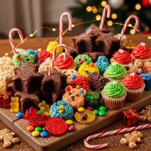 For a sweet treat, include bite-sized brownies, rice krispie treats, mini cupcakes, and Christmas candies.