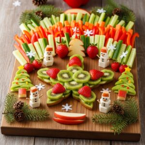 Arrange them in sections for variety, and use holiday-themed bowls for dips like hummus or ranch.