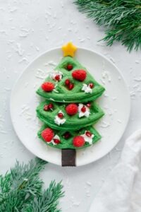 These adorable green waffles, shaped and decorated like mini Christmas trees, bring cheerful holiday spirit to your breakfast table.