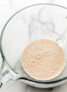 - Dissolve yeast in warm milk with 1 tsp sugar. Let sit 5–10 minutes until foamy.