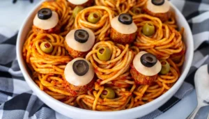 Turn classic spaghetti and meatballs into a frightful dish with eyeball meatballs.