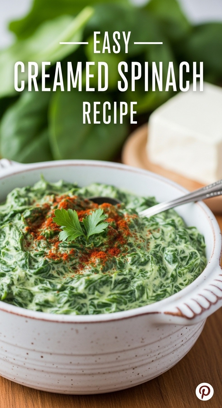 This creamed spinach is smooth, flavorful, and has just the right balance of creaminess and freshness.