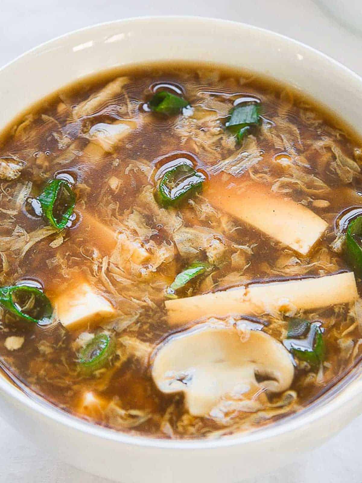 This soup combines the perfect balance of heat from white pepper and tanginess from vinegar, with a hearty mix of vegetables, tofu, and mushrooms.