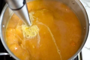 Blend until smooth – Use an immersion blender (or transfer to a regular blender in batches) to puree the soup until creamy.