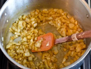 Sauté the aromatics – Heat olive oil in a large pot over medium heat. Add the onion and garlic, and cook until fragrant and soft.