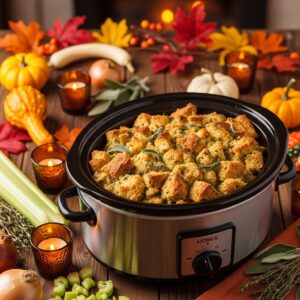 Classic herbed stuffing that cooks perfectly moist and flavorful in the slow cooker.