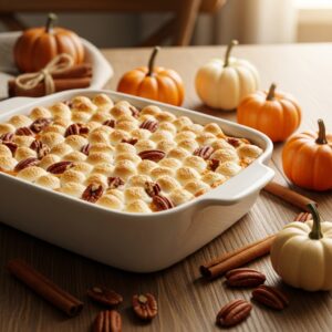 Sweet and creamy potatoes topped with crunchy pecans or gooey marshmallows.