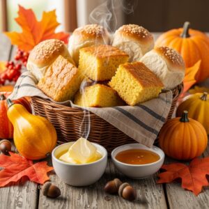 Freshly baked cornbread or soft dinner rolls are a wonderful addition to any Thanksgiving potluck.