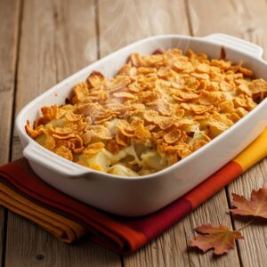 Made with hash browns, sour cream, shredded cheese, and a crispy cornflake topping, it’s always a favorite side at large gatherings.