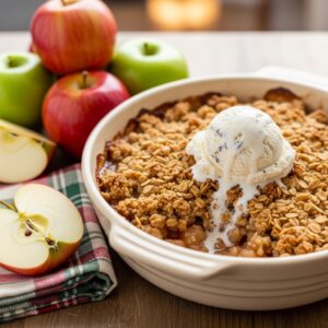 The warm, cinnamon-spiced apples and crunchy oat topping make it a comforting end to any Thanksgiving meal.